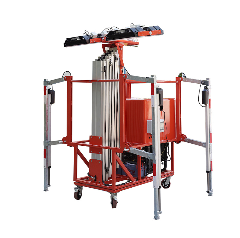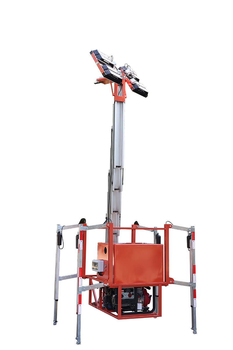 1.設(shè)備底盤采用高強度錳鋼管加工焊接制作,保證設(shè)備在升降過程中的穩(wěn)定性。 2.舉升機構(gòu)主桅桿采用高強度鋁合金6063表面硬質(zhì)氧化(渤海鋁業(yè)),具有防腐蝕效果具有良好的抗風(fēng)性能。 3.4套LED燈具,照明亮度高,覆蓋范圍廣,照明距離遠。 4.采用手動電動雙啟動發(fā)電機,使用于高原或低溫環(huán)境。 5.設(shè)有停電情況下的應(yīng)急下降裝置。 6.支腿:設(shè)備獨特的安全支腿力學(xué)設(shè)計,裝卸方便,設(shè)備支撐面積大,安全系數(shù)增加。 7.行程開關(guān):設(shè)備設(shè)有行程開關(guān)、油缸活塞限位、緊急停止按鈕等多套安全保護措施, 8.液壓系統(tǒng):裝有進口液壓動力單元,運行安全可靠, 9.密封:設(shè)備采用進口密封圈,高品質(zhì)密封杜絕漏油的隱患。 10.電器:揚天特殊訂制集成電控箱,地面獨立操作更加穩(wěn)定,內(nèi)安裝過載保護器超過額定電流時自動切斷電源,更好的保護發(fā)電機安全運行,再有市電的環(huán)境工作,可接通220V市電切換,實現(xiàn)長時間無間斷照明。 |